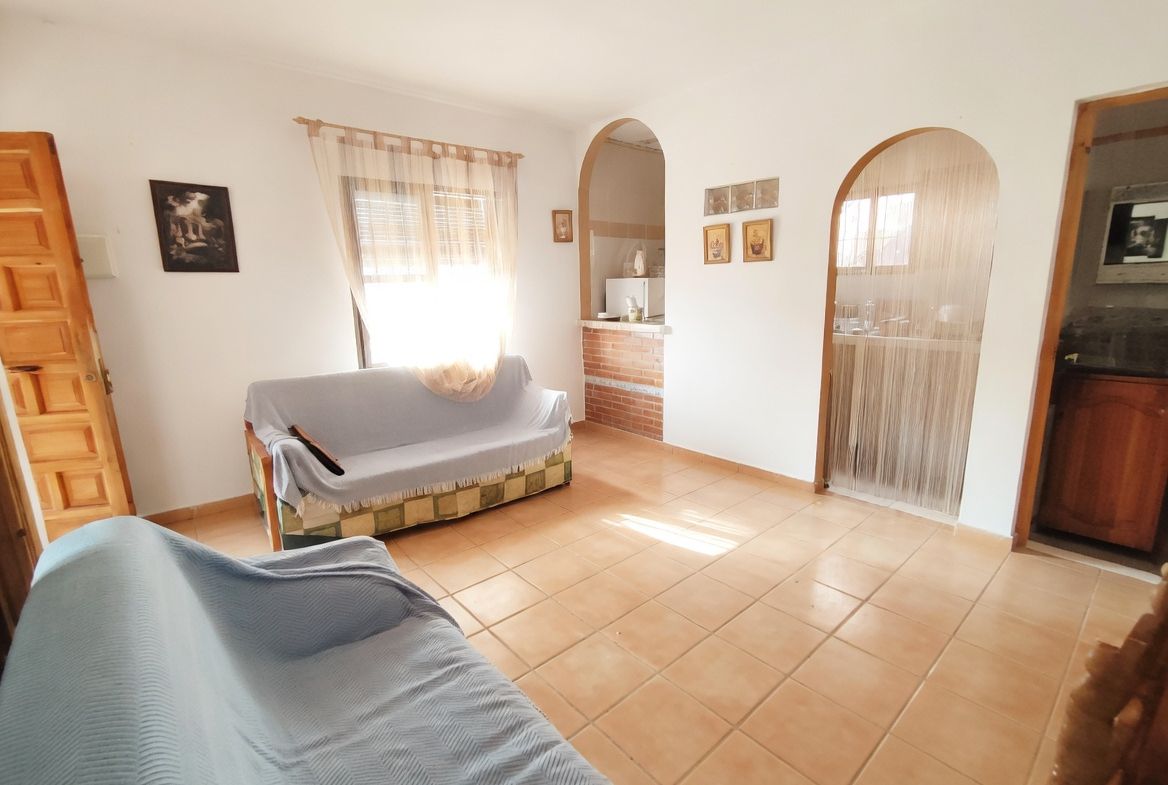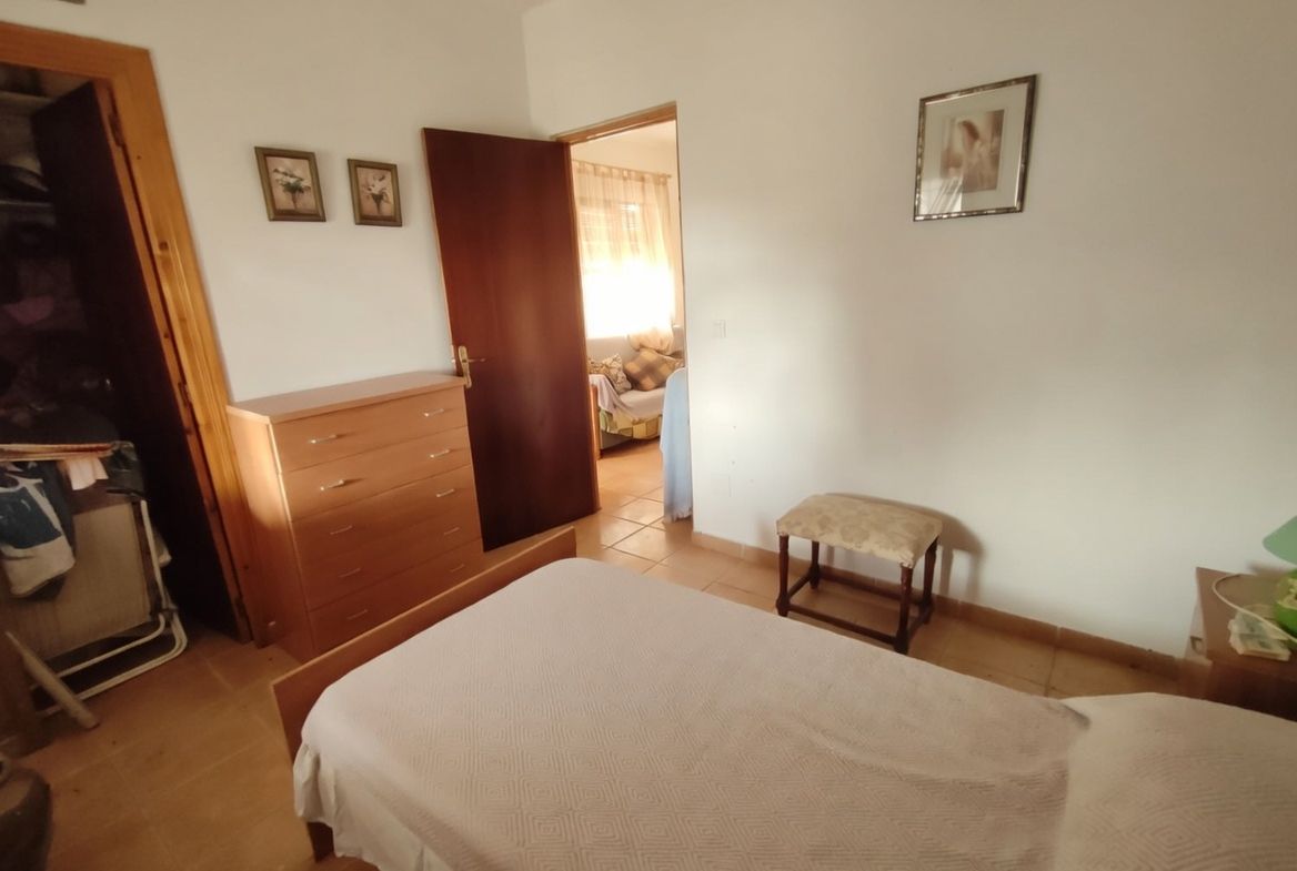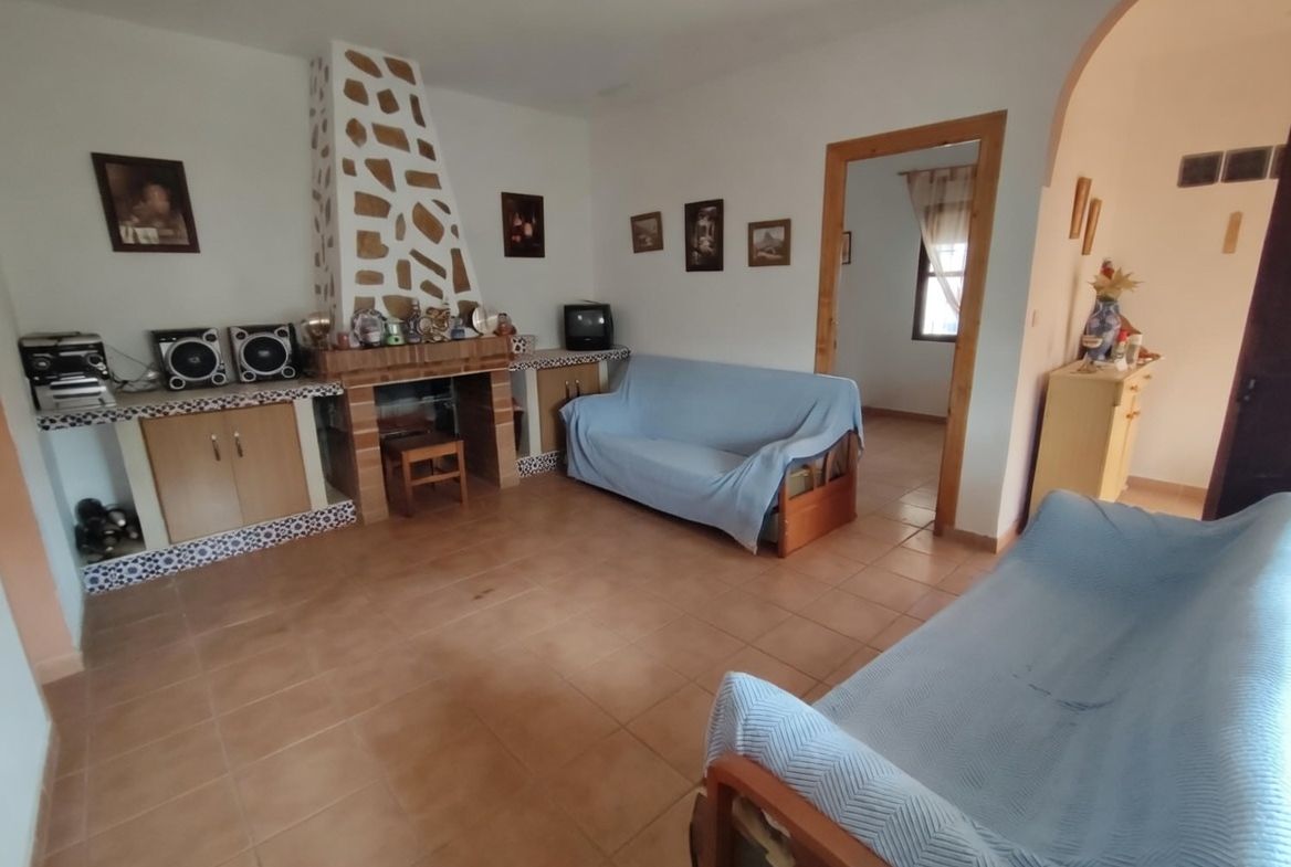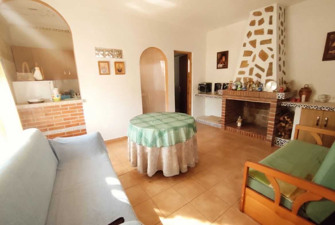 El cortijo cuenta con 40 m² útiles, distribuidos en 2 acogedores dormitorios, un baño y un salón con chimenea que invita a relajarse. Además, la propiedad dispone de una terraza y un balcón desde donde se pueden contemplar las impresionantes vistas despejadas al entorno natural. La piscina es perfecta para refrescarse en los días calurosos, mientras que el depósito de agua de 10.000 litros asegura un suministro constante.